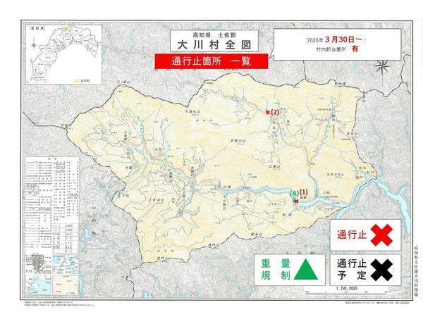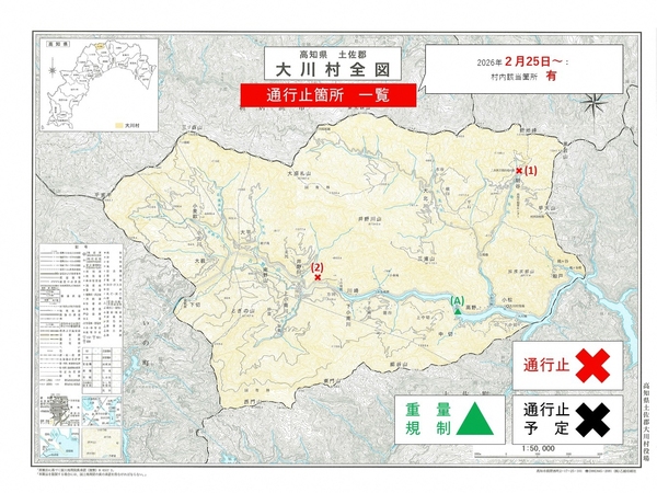 通行止め予定がある場合は 黒×記号 で表示いたします。
